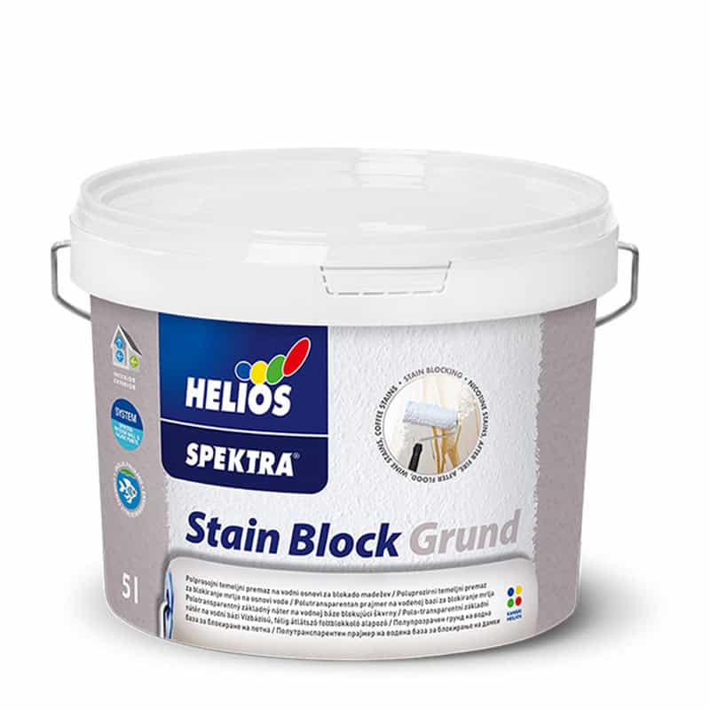 Κατά την ανακαίνιση επιφανειών τοίχων, συχνά υπάρχουν λεκέδες που δεν μπορούν να καλυφθούν πλήρως με βαφές εσωτερικού τοίχου με βάση το νερό. Τέτοιοι λεκέδες προκύπτουν από διαρροές νερού ή διαρροή, γραφή και σχέδιο στους τοίχους, χυμένα τρόφιμα, κάπνισμα, θέρμανση κ.λπ. Όλοι αυτοί οι λεκέδες μοιράζονται την ικανότητα να διαλύονται στο νερό, πράγμα που σημαίνει ότι όταν στεγνώνει το χρώμα τοίχου, το νερό που εξατμίζεται θα τους βγάλει στην επιφάνεια. Το SPEKTRA Stain Block Grund είναι ένα ημιδιαφανές αστάρι με βάση το νερό. Προσφέρει εξαιρετικό μπλοκάρισμα των λεκέδων που προκαλούνται από νικοτίνη, φωτιά, διαρροές νερού, τανίνες, κρασί, χυμούς, καφέ, μολύβια χρωματισμού κ.λπ. και αποτρέπει την επανεμφάνισή τους στην τελική επίστρωση. Οι κατάλληλες τελικές επιστρώσεις περιλαμβάνουν οποιοδήποτε χρώμα εσωτερικού τοίχου SPEKTRA