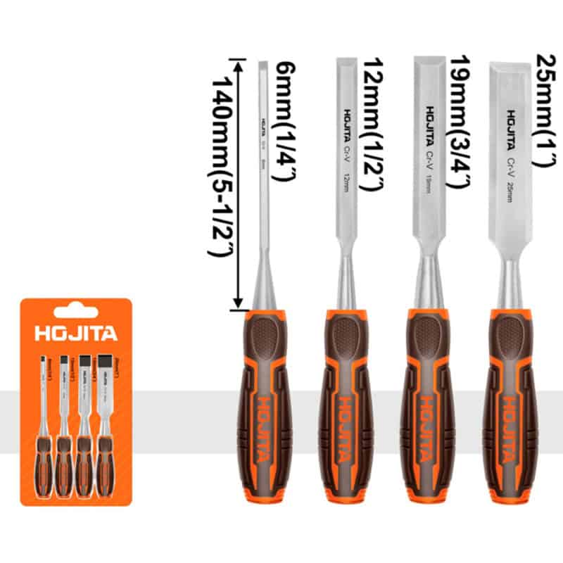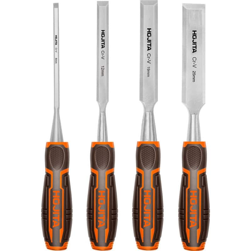 - Το σετ περιλαμβάνει: 4 σκαρπέλα με πλάτος λάμας 6mm, 12mm, 19mm, 25mm